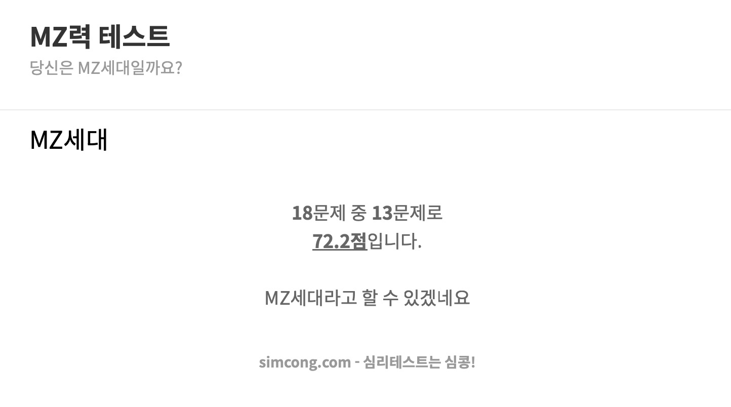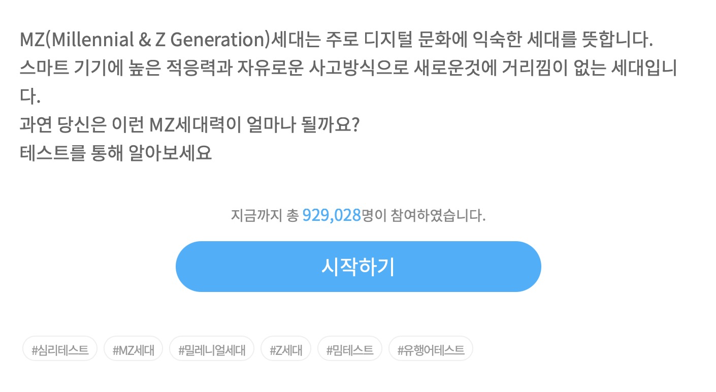MZ력 테스트라고 재미있는 심심풀이 테스트가 있습니다.