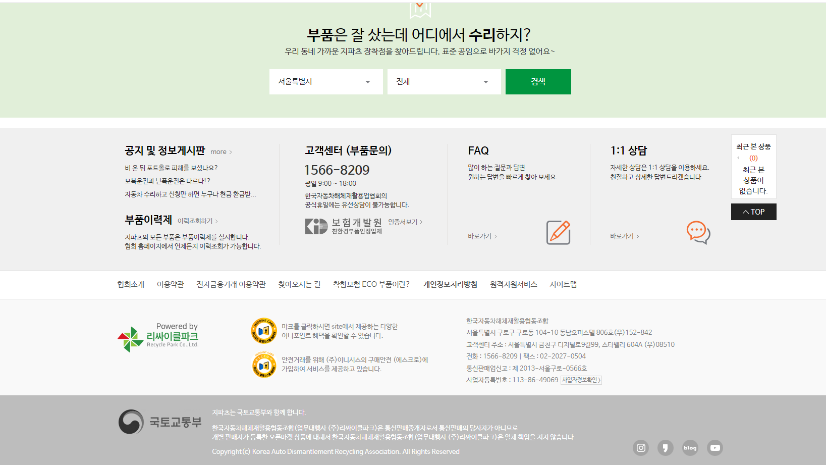 전국폐차장 연합 자동차 재사용 중고부품 전문쇼핑몰